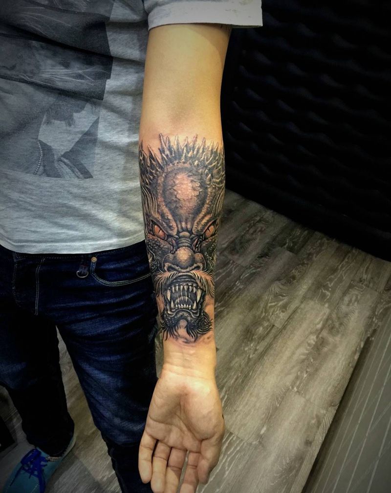 龙头纹身图片_成品手臂传统神兽纹身图案