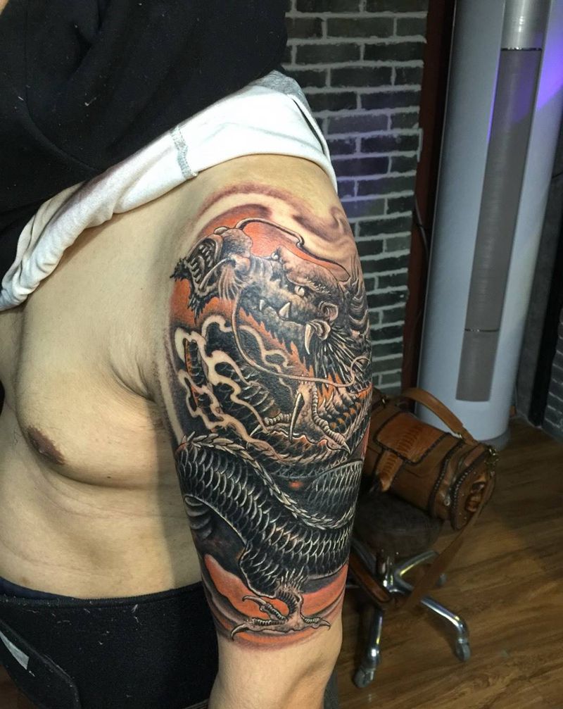 遮盖龙纹身图片_手臂传统成品神兽纹身图案