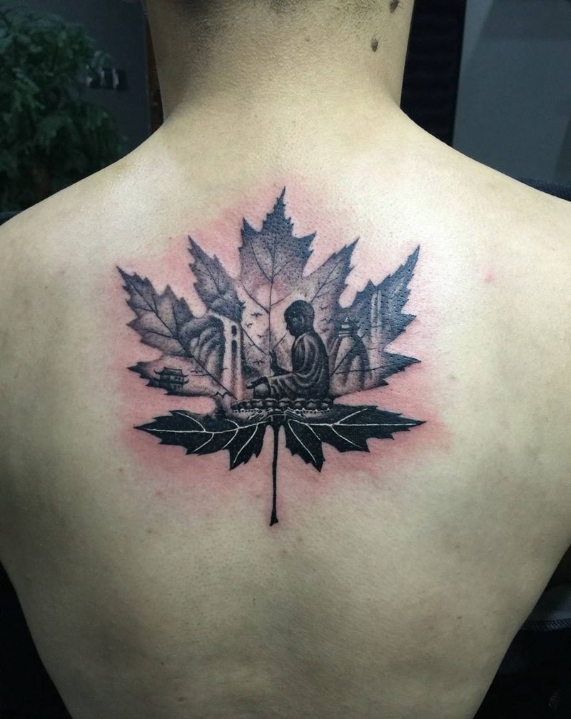 • 黑灰满背纹身图案