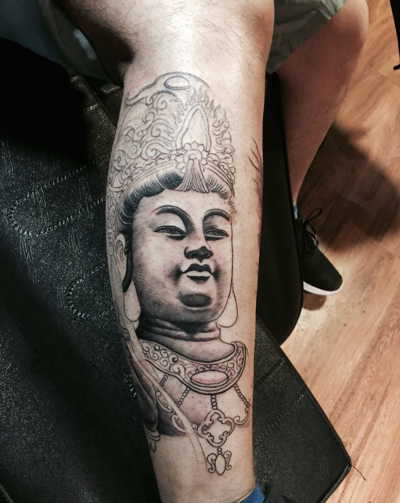 大势至菩萨纹身图片_成品腿部传统宗教纹身图案
