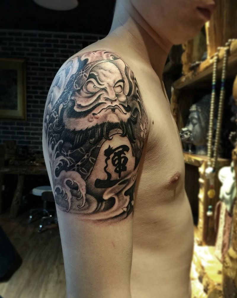 达摩纹身图片_手臂成品传统宗教纹身图案