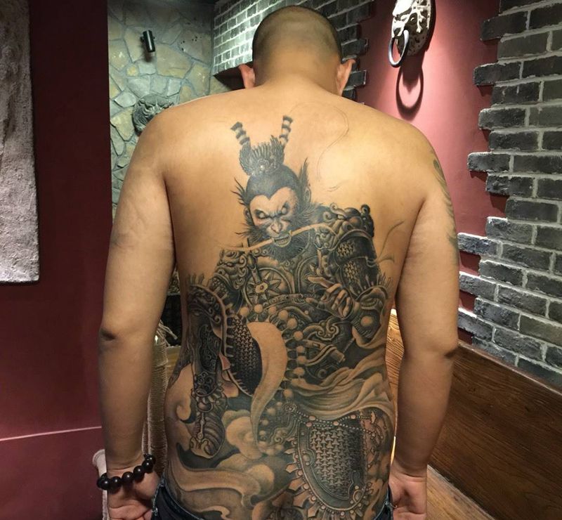 齐天大圣纹身图片_成品背部传统宗教纹身图案