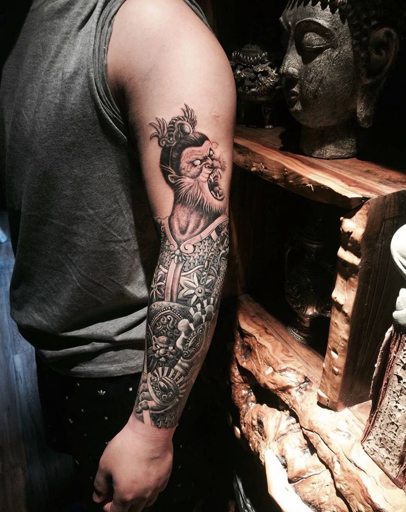 当前位置: 首页 >山东省济南市纹身店-翰墨刺青纹身图案>斗佛纹身图片_成品手臂传统宗教遮盖纹身图案