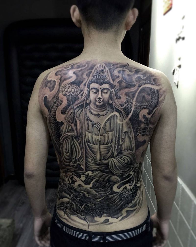 当前位置: 首页 >山东省济南市纹身店-翰墨刺青纹身图案>观音纹身图片_背部传统宗教成品纹身图案
