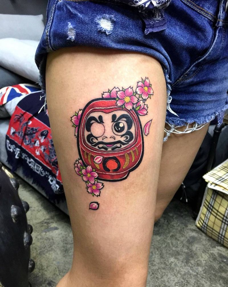 达摩纹身图片_成品腿部传统宗教纹身图案