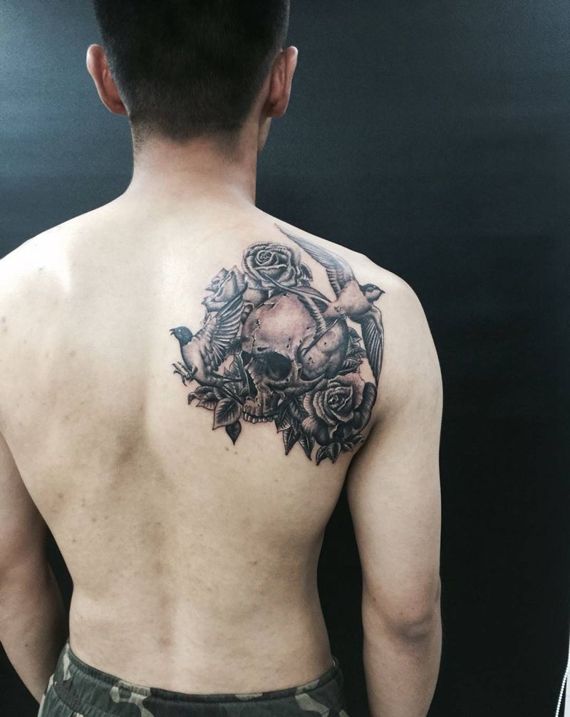 当前位置: 首页 >山东省济南市纹身店-翰墨刺青纹身图案>骷髅纹身图片_成品肩部欧美静物纹身图案