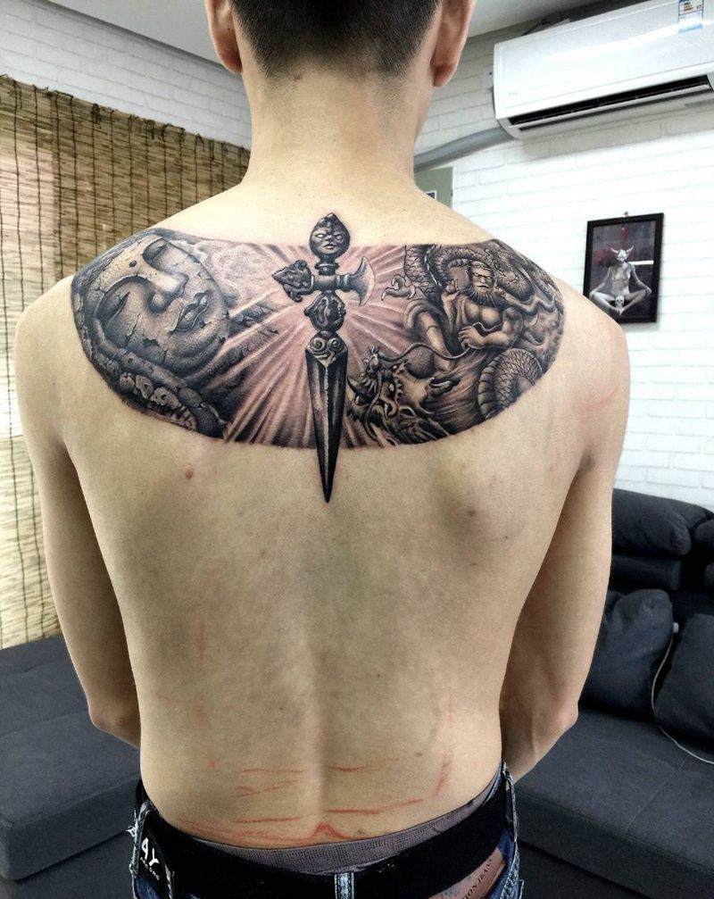 最美画卷纹身图片_成品背部传统宗教纹身图案