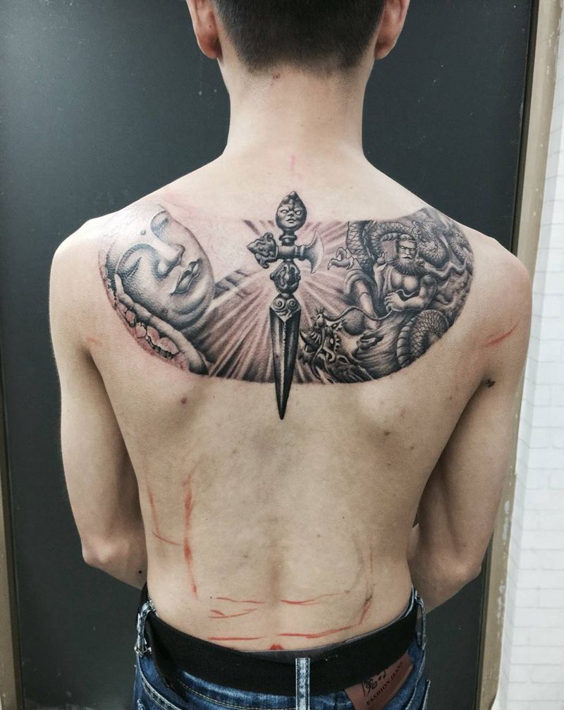 最美画卷纹身图片_成品背部传统宗教纹身图案