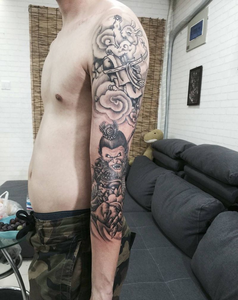 当前位置: 首页 >山东省济南市纹身店-翰墨刺青纹身图案>猴子猴子纹身图片_手臂传统宗教纹身图案