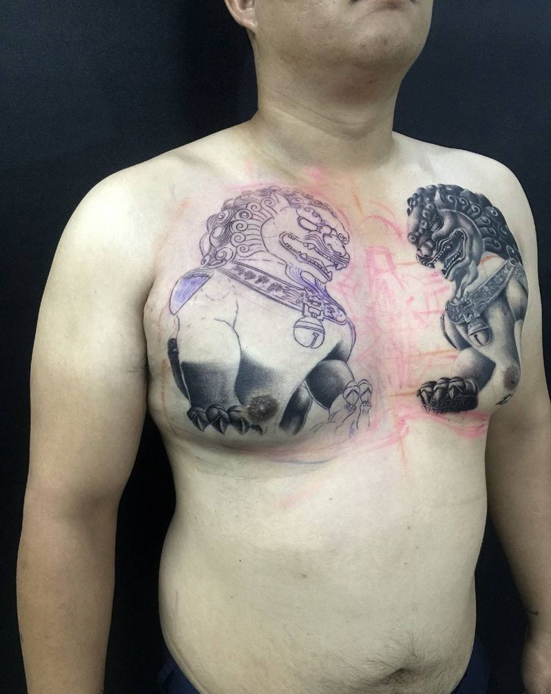 ……纹身图片_成品胸部传统宗教神兽纹身图案