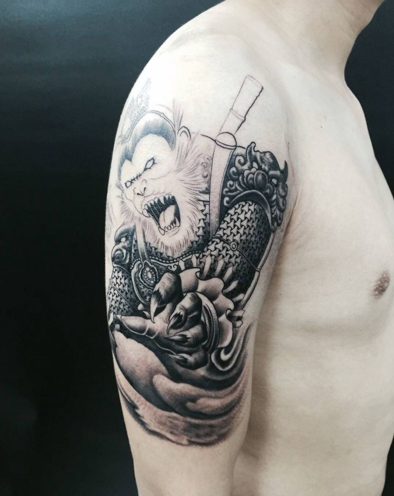 放肆桀骜纹身图片_成品手臂传统宗教齐天大圣纹身图案