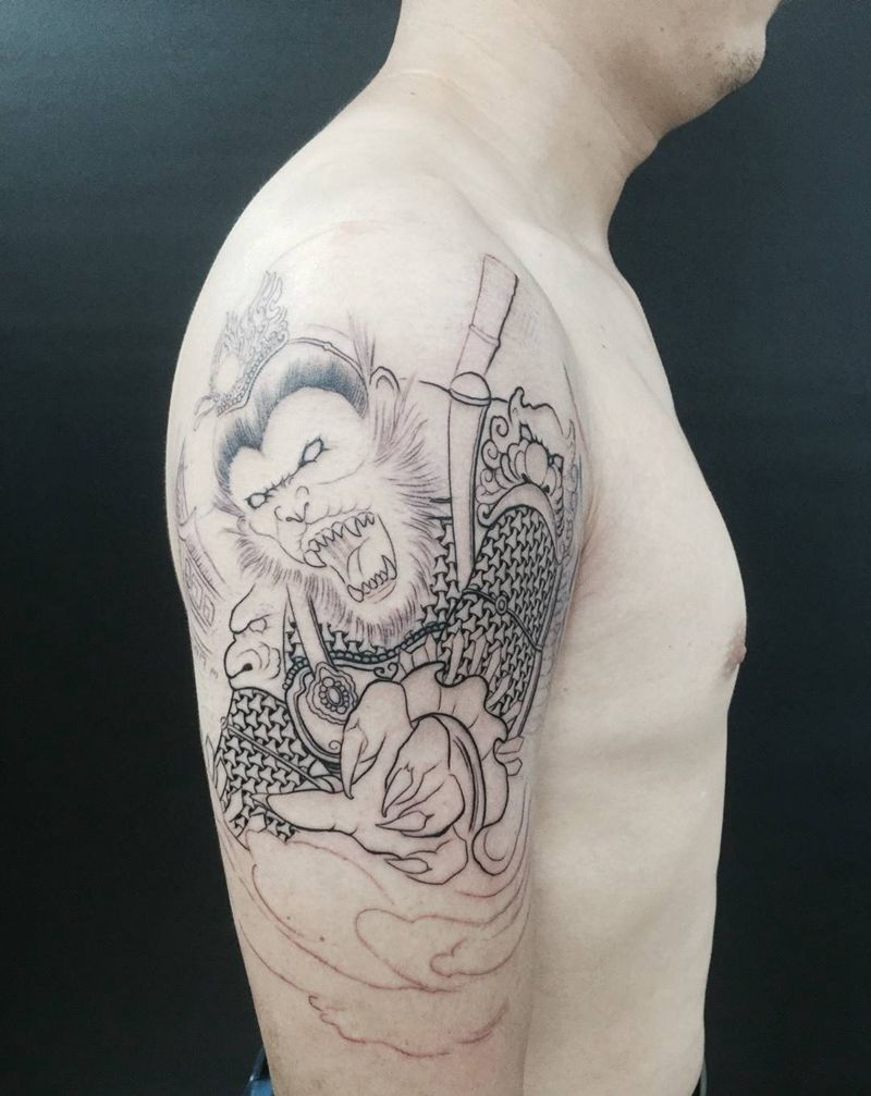 放肆桀骜纹身图片_成品手臂传统宗教齐天大圣纹身图案