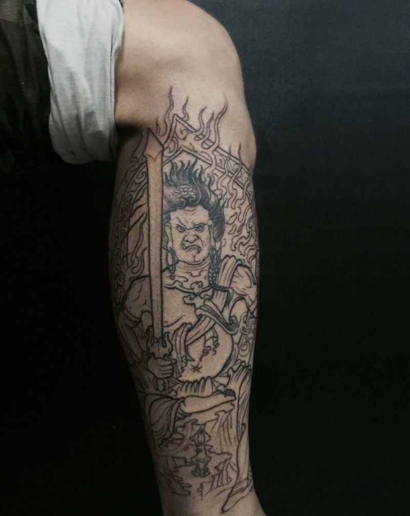当前位置: 首页 >山东省济南市纹身店-翰墨刺青纹身图案>不动尊纹身图片