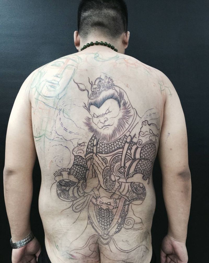 当前位置: 首页 >山东省济南市纹身店-翰墨刺青纹身图案>大圣拜佛纹身图片