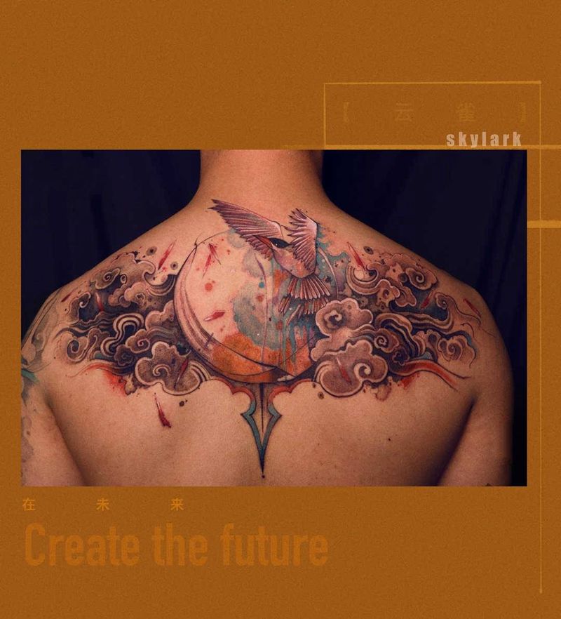 当前位置: 首页 >山东省济南市纹身店-浮歌刺青纹身图案>云.雀纹身图片_背部胸部新传统纹身图案