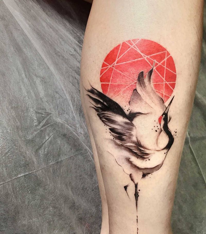 当前位置: 首页 >山东省济南市纹身店-浮歌刺青纹身图案>鹤纹身图片_手臂腿部水墨纹身图案
