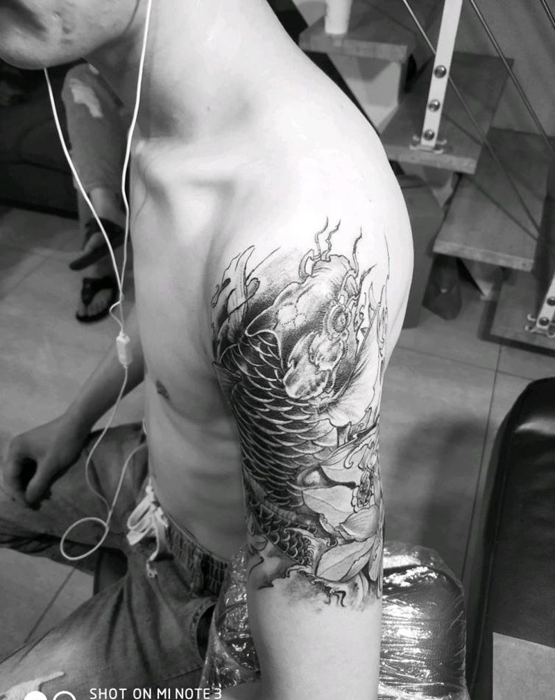 鲤鱼遮盖纹身图片_手臂胸部新传统纹身图案