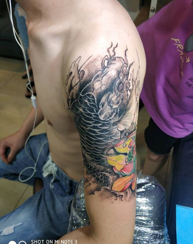 鲤鱼遮盖纹身图片_手臂胸部新传统纹身图案