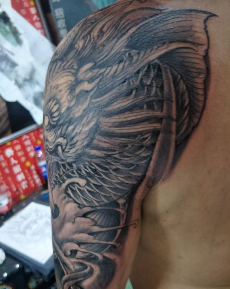 • 纹身吧推荐的披肩图腾半胛纹身图案作品展示