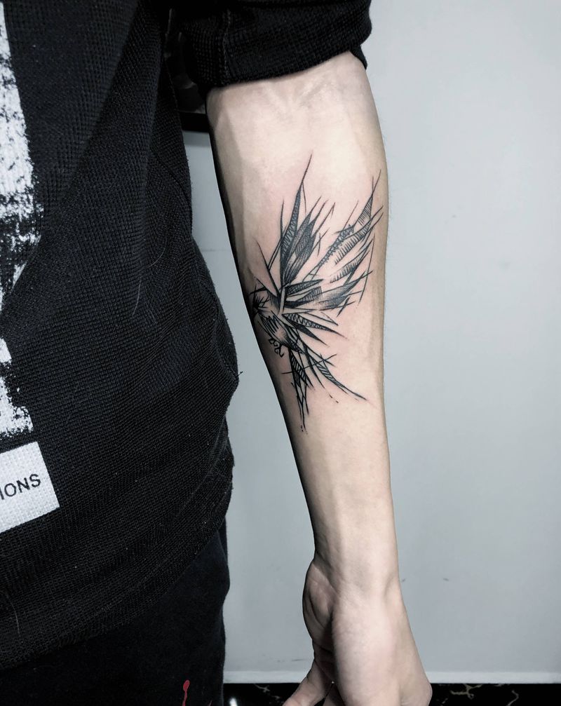愤怒的小鸟纹身图片_手臂点刺几何纹身图案