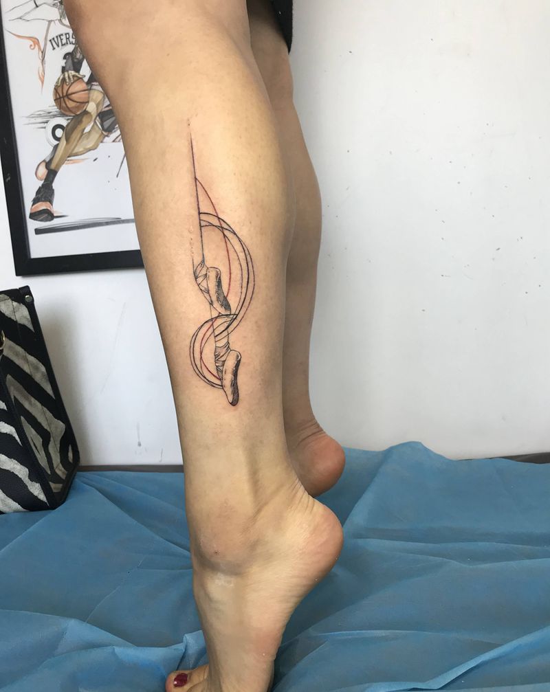 舞蹈者纹身图片_腿部几何纹身图案