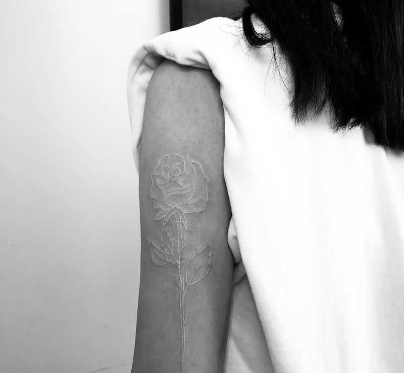 当前位置: 首页 >山东省济南市纹身图案>弯刀划过白玫瑰纹身图片_手臂水彩水墨纹身图案