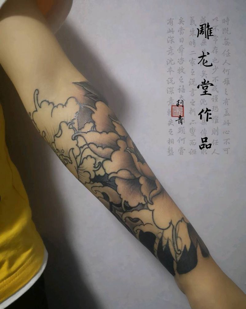 牡丹花臂纹身图片_手臂新传统牡丹花臂纹身图案