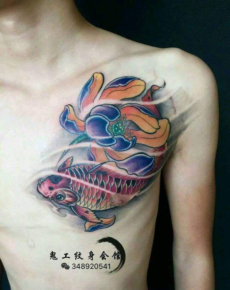 当前位置: 首页 >山东省济南市纹身店-鬼工刺青纹身图案>彩色鲤鱼纹身图片