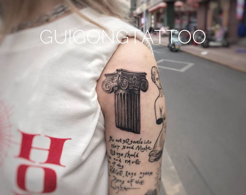 点刺小作-古希腊爱奥尼克柱式纹身图片_手臂欧美写实纹身图案
