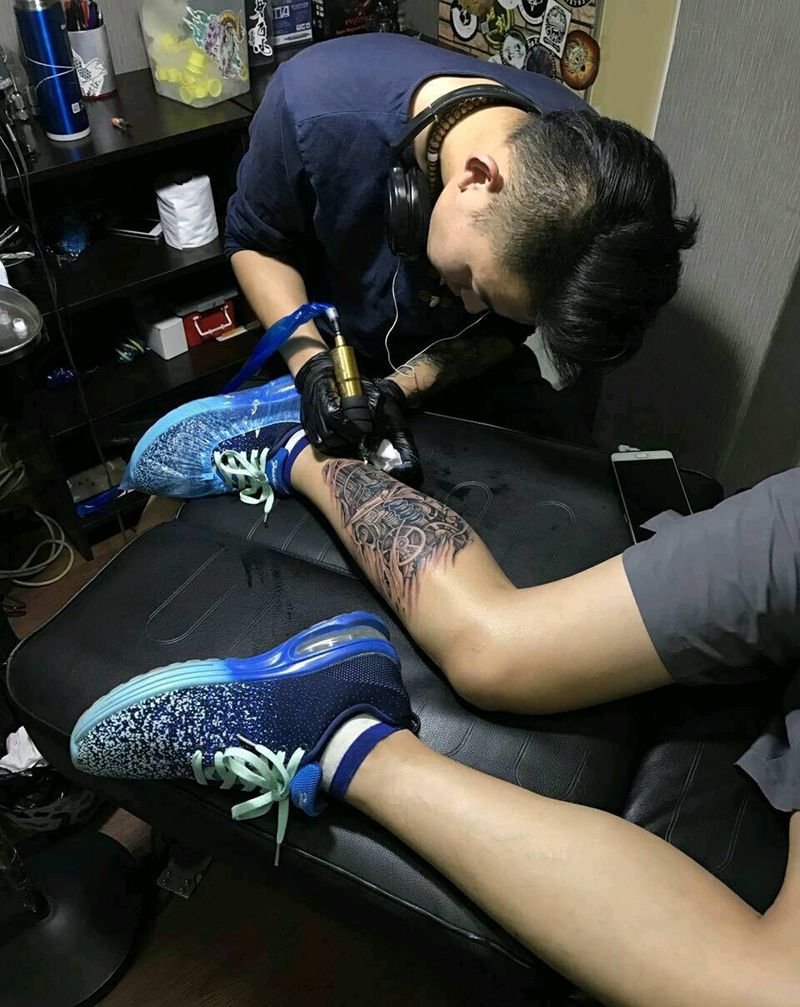 • T网红王老大花腿龙纹身图片_腿部新传统纹身图案