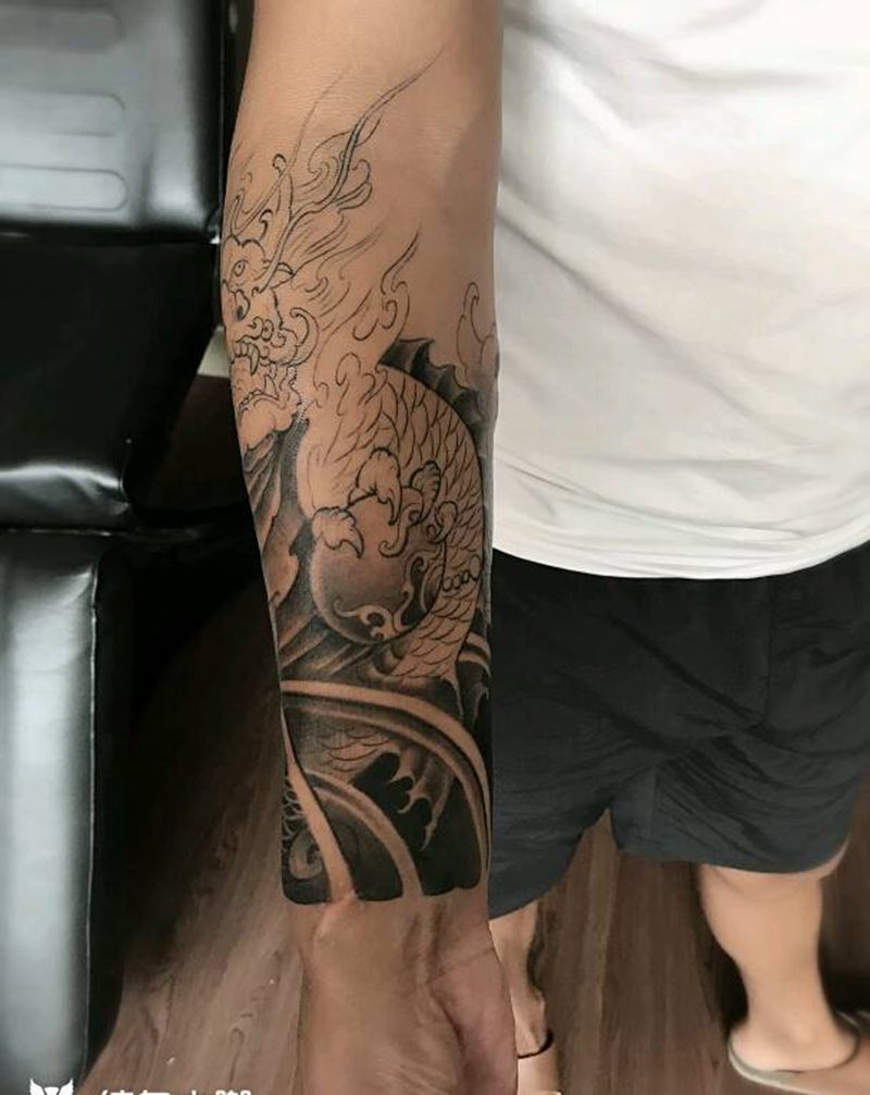 • T网红王老大花腿龙纹身图片_腿部新传统纹身图案