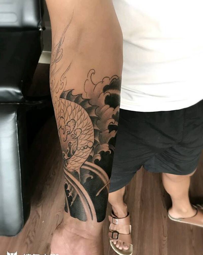• T网红王老大花腿龙纹身图片_腿部新传统纹身图案