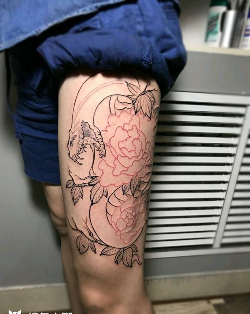 • T网红王老大花腿龙纹身图片_腿部新传统纹身图案