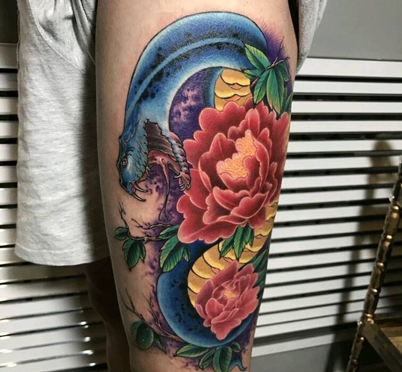 • T网红王老大花腿龙纹身图片_腿部新传统纹身图案