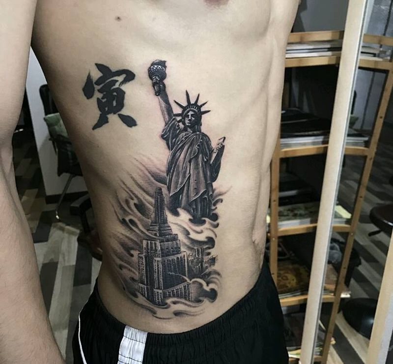 当前位置: 首页 >山东省济南市纹身店-鬼工刺青纹身图案>自由女神配帝国大厦纹身图片