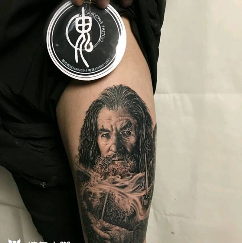 黑灰满背纹身图案