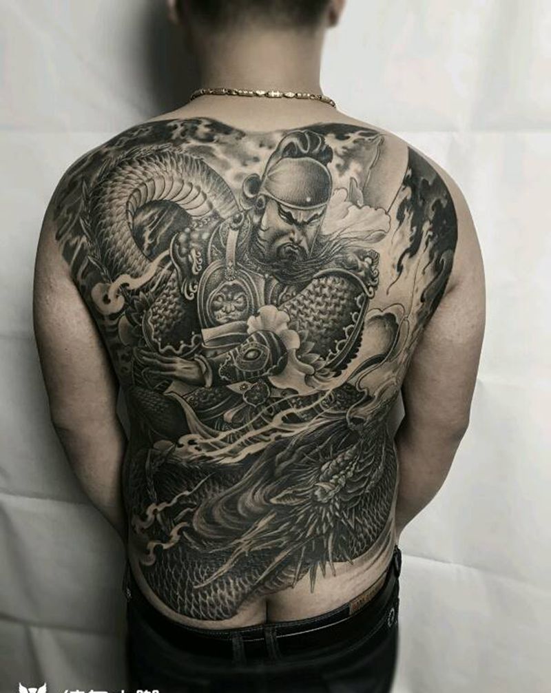 当前位置: 首页 >山东省济南市纹身店-鬼工刺青纹身图案>关公踏龙纹身图片