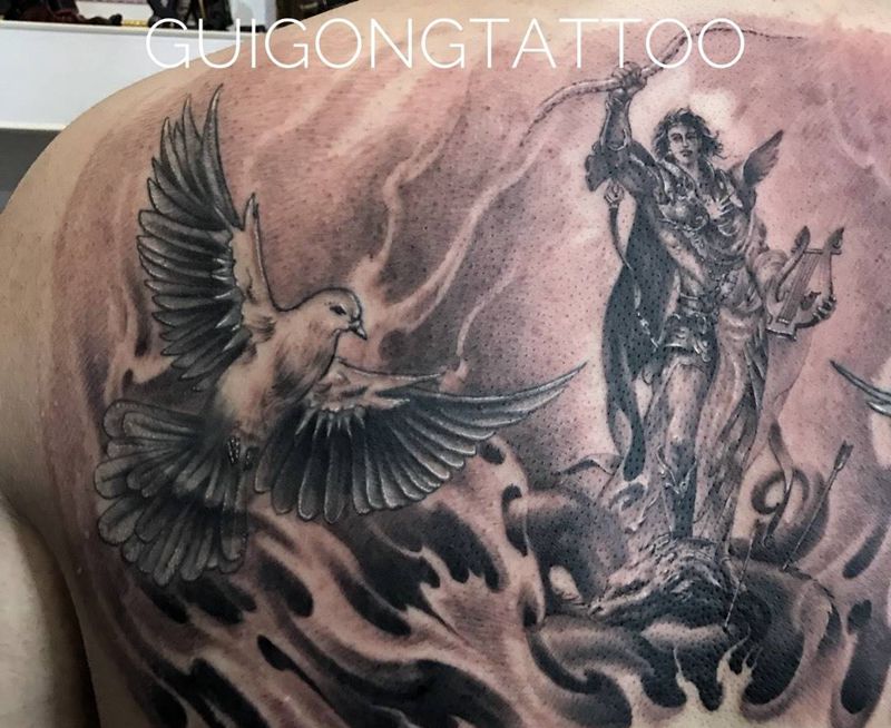• 纹身吧推荐的披肩图腾半胛纹身图案作品展示