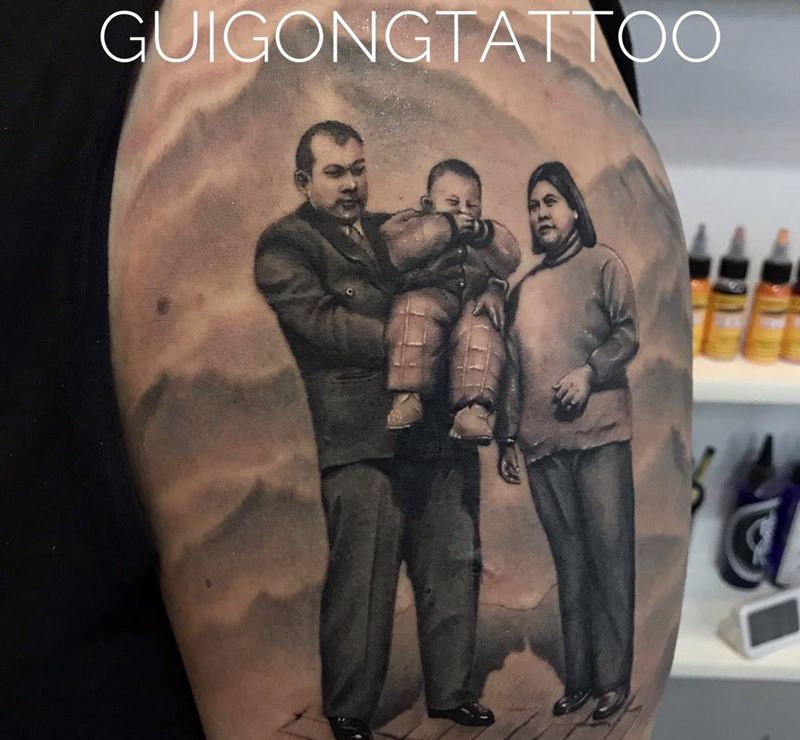 当前位置: 首页 >山东省济南市纹身店-鬼工刺青纹身图案>父爱如山纹身图片_肩部手臂欧美写实肖像纹身图案