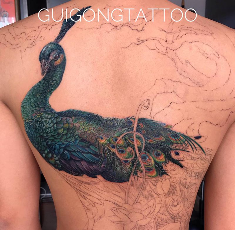黑灰满背纹身图案