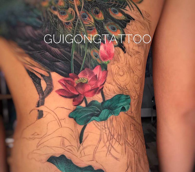 一组15张莲花纹身手