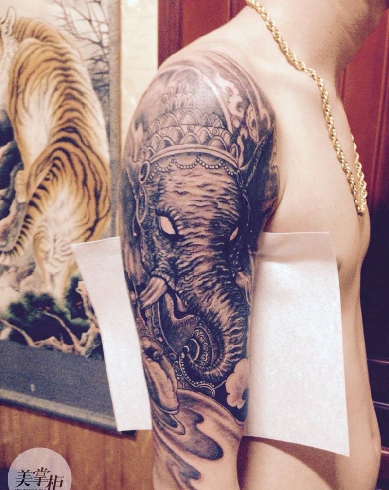 当前位置: 首页 >山东省济南市纹身店-龙啸堂刺青文化纹身图案>象神纹身图片