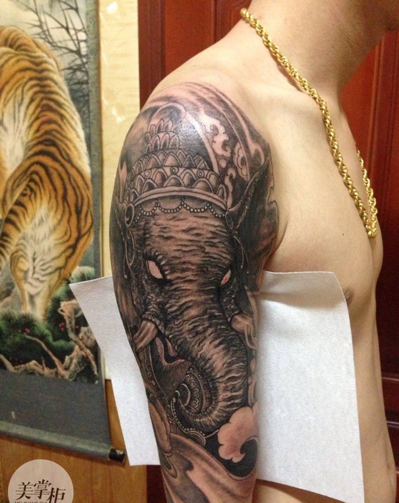 当前位置: 首页 >山东省济南市纹身店-龙啸堂刺青文化纹身图案>象神纹身图片