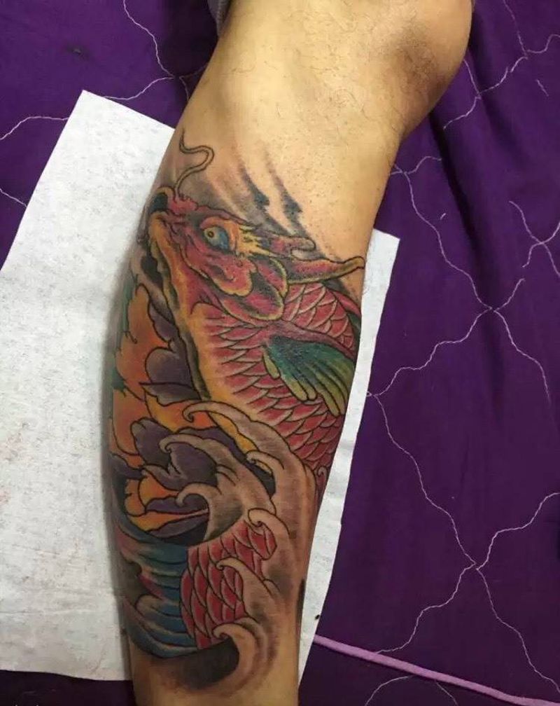 • T网红王老大花腿龙纹身图片_腿部新传统纹身图案