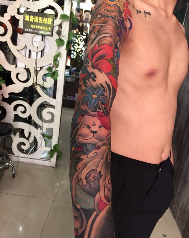 当前位置: 首页 >山东省济南市纹身店-龙啸堂刺青文化纹身图案>彩色花臂纹身图片