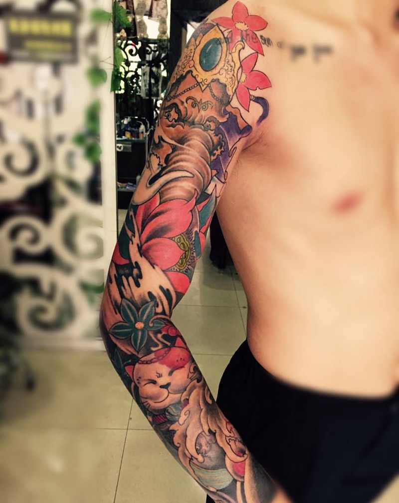 当前位置: 首页 >山东省济南市纹身店-龙啸堂刺青文化纹身图案>彩色花臂纹身图片
