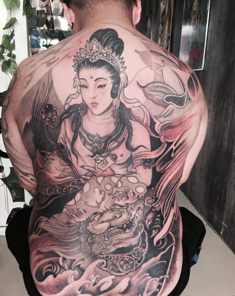 当前位置: 首页 >山东省济南市纹身店-龙啸堂刺青文化纹身图案>满背文殊菩萨完成,历时18小时,纹身请提前预约。纹身图片