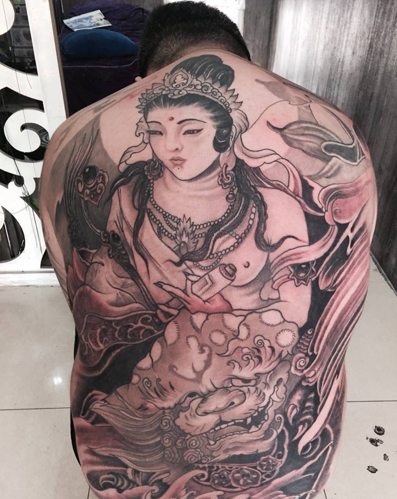 当前位置: 首页 >山东省济南市纹身店-龙啸堂刺青文化纹身图案>满背文殊菩萨完成,历时18小时,纹身请提前预约。纹身图片