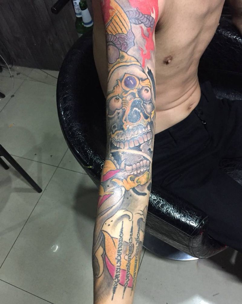 当前位置: 首页 >山东省济南市纹身店-龙啸堂刺青文化纹身图案>彩色花臂纹身图片