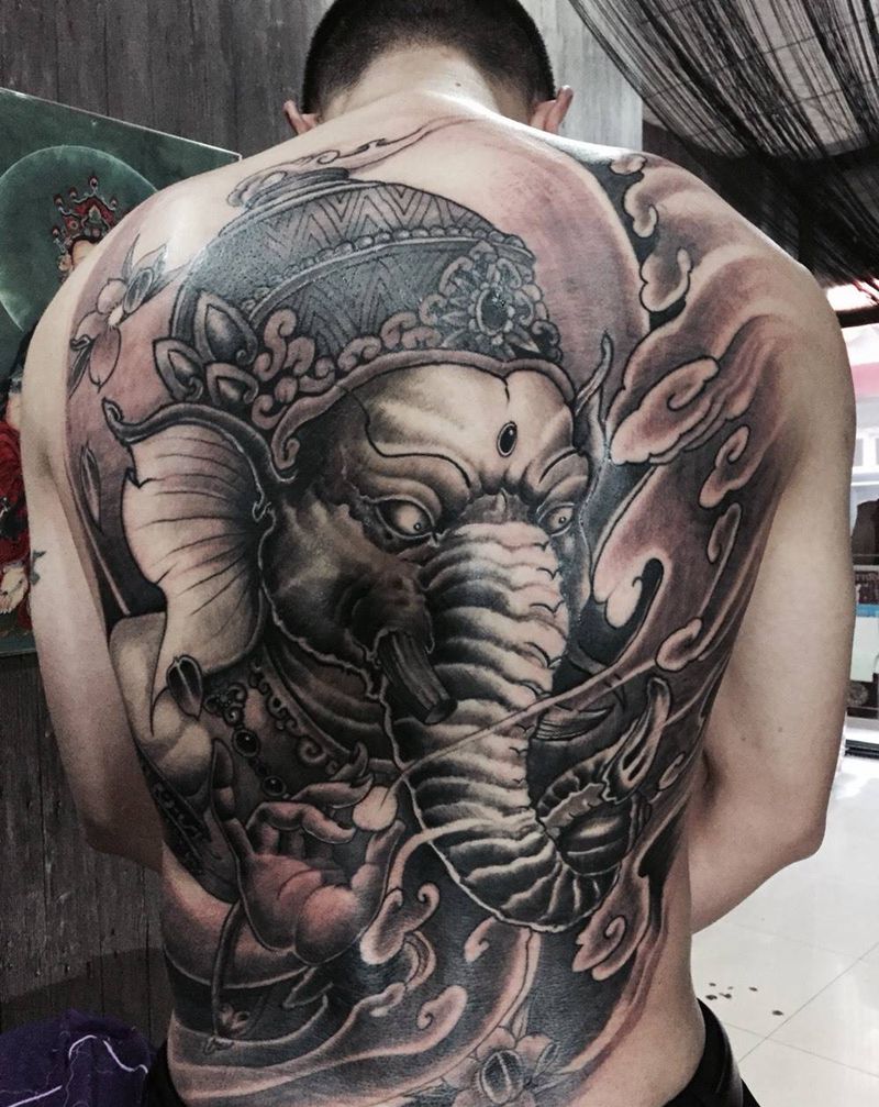 当前位置: 首页 >山东省济南市纹身店-龙啸堂刺青文化纹身图案>象神纹身图片